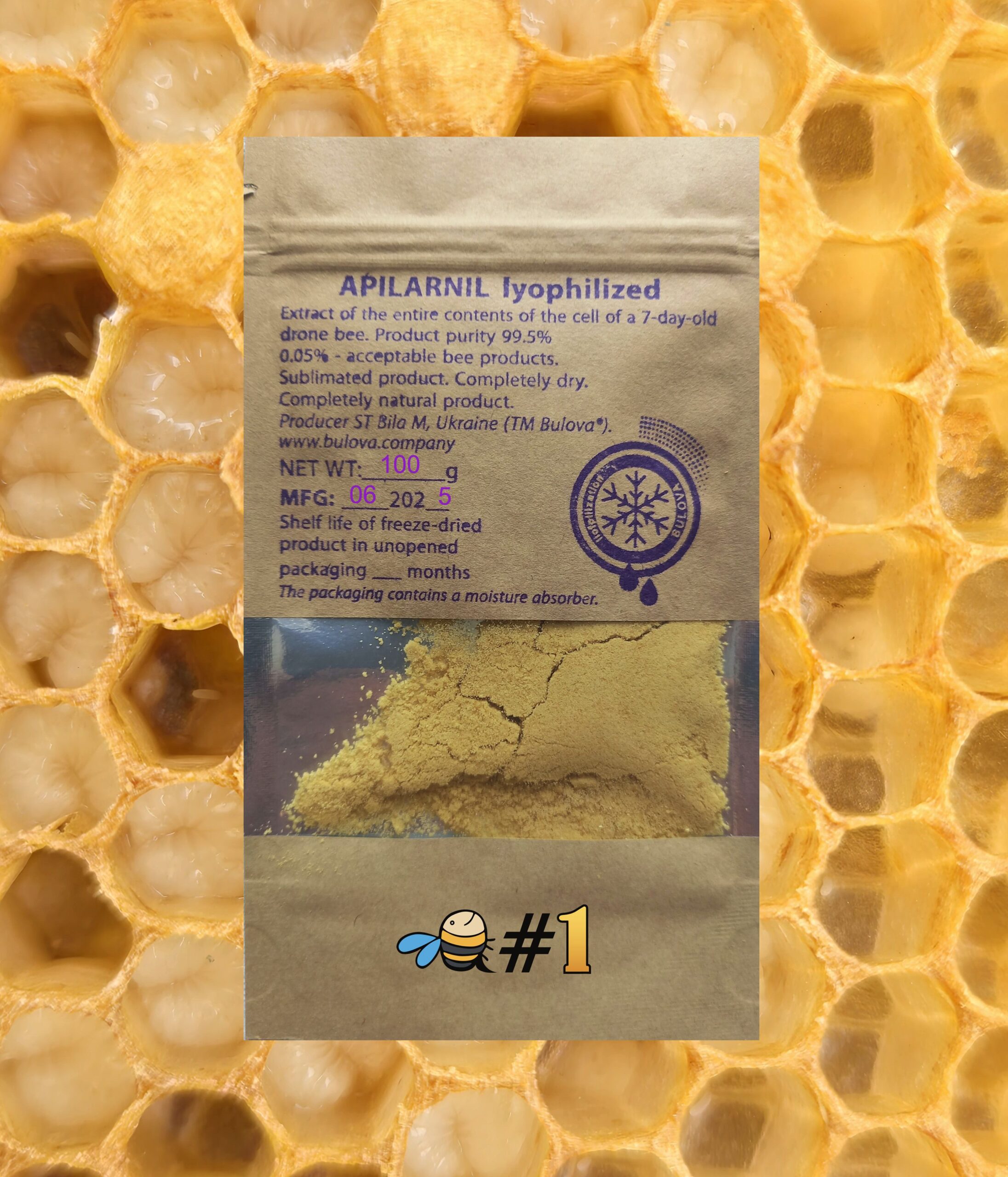 ブローバからのアピラニル処理の高い技術: ガラス化 - 原材料の高速で穏やかな凍結 (アピラルニル細胞) その後の凍結乾燥, ミツバチの雄ホルモンの低温で製品の保存を保証する - アピラニルの主な活性物質: オスの天然ホルモン, ペプチドと酵素.